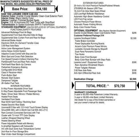Laura Chrysler Dodge Jeep RamDisclaimersYou pay the price listed plus a $604 admin fee, applicable tax, title and license less any extra incentives if available and/or applicable. Please see dealer for additional details.