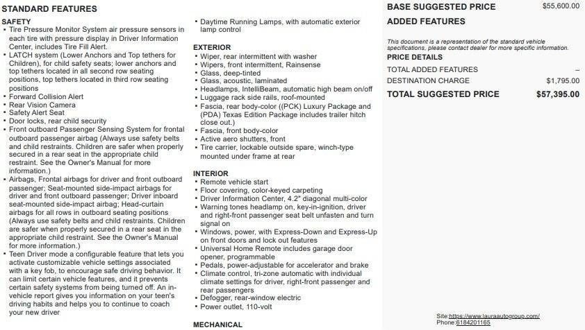 Laura Chrysler Dodge Jeep RamDisclaimersYou pay the price listed plus a $620 admin fee, applicable tax, title and license less any extra incentives if available and/or applicable. Please see dealer for additional details.