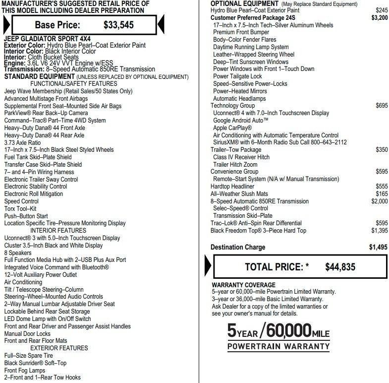 - Vehicle Name: Jeep Gladiator