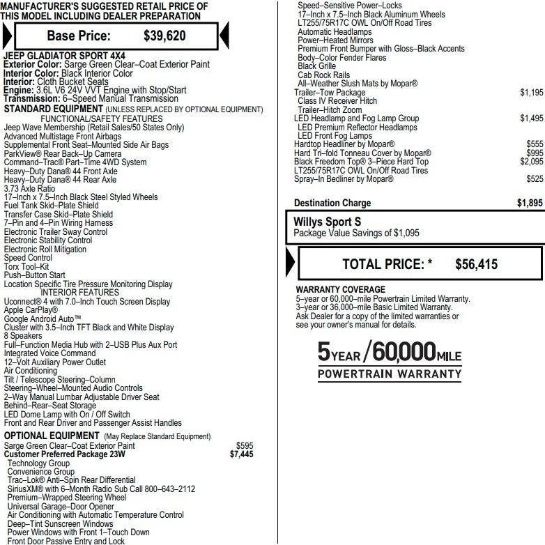 - Vehicle Name: Jeep Gladiator